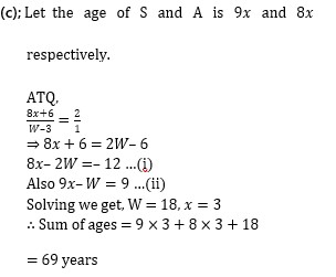 Ratio of present age of S to A is 9 : 8 and ratio of age of A, 6 years later to 3 years earlier age of W is 2 : 1. The difference between present age of S and W is 9 years. Find the sum of ages of A, S and W