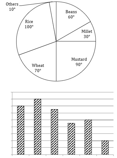 Direction : Pie chart given below shows the availability of six types of crops which a dealer have and bar chart given below shows percentage of fresh crops out of total crops. Study the data carefully and wer the following questions.