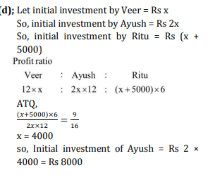 Veer and Ayush started a business together with investments in ratio of 1 : 2. After 6 months, Ritu joined the business with investment of Rs 5,000 more than that of investment of Veer. If at the end of year, ratio between profit share of Ritu and Ayush is 9 : 16 then find the initial investment of Ayush?