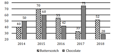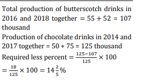Multiple Choice Questions on The total productions of butterscotch drinks in 2016 and 2018 together are what percent more less th........... for Insurance Services Examination Preparation