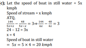 Ratio between speed of boat in still water to speed of stream is 5 : 1. If boat travels 48 km upstream in 3 hours less than 144 km downstream, then find the speed of boat in still water?
