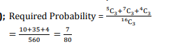 A bag contains 5 black, 7 blue and 4 brown colour balls. 3 balls are drawn at random. Find the probability that all 3 balls are of same colour.