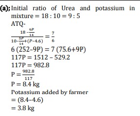 A farmer have 18 kg urea and 10kg of potassium. He mixes both of them and uses P kg of mixture for his field. If farmer added (P-4.6) kg of potassium to remaining mixture, the new ratio of Urea and potassium becomes 7:6, find what amount at potassium was added by farmer?
