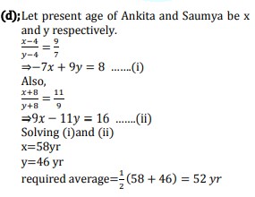Four years ago ratio between age of Ankita and Saumya was 9 : 7. Eight year hence from present ,ratio of their ages becomes 11 : 9. Find average present age of Ankita and Saumya?