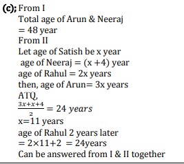I. Average age of Arun and Neeraj is 24 years and ratio of age of Rahul to Arun is 2 : 3.