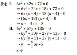 Directions : In each question two equations numbered (I) and (II) are given. Student should solve both the equations and mark appropriate answer.