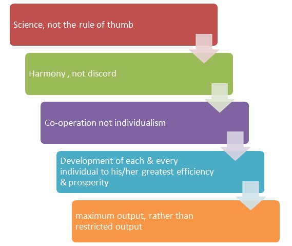 Taylor’s Principles The fundamental principles that Taylor saw underlying the scientific approach to management may be summarised as follows: