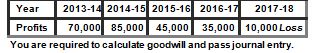 Q6.X, Y and Z are partners sharing profits and losses in the ratio of 5 : 3 : 2. From 1st April, 2018, they decided to share profits and losses equally. The Partnership Deed provides that in the event of any change in the profit-sharing ratio, the goodwill should be valued at two years' purchase of the average profit of the preceding five years. The profits and losses of the preceding years ended 31st March, are: