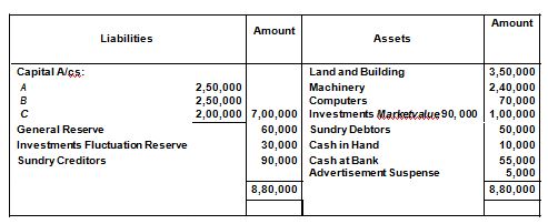 Q23.A, B and C are partners sharing profits and losses in the ratio of 5 : 3 : 2. Their Balance Sheet as at 31st March, 2019 stood as follows: