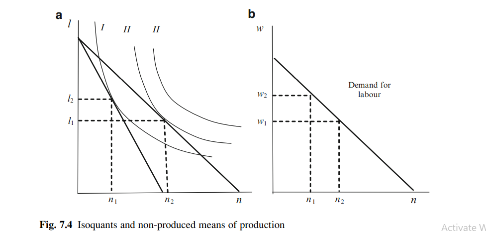 In what follows, we suppose an economy where we have an initially given quantity of land and labour. The agents of the economy express their preferences through their utility functions, which convey the fact that the services of labour as well as of land give negative utility. We must connect the supply of factors of production and the production of goods that are demanded and the derived demand for the factors of production. This connexion is possible through the mediation of technology. Moreover, we need to hypothesise that competition forces the entrepreneurs to choose from the set of possible techniques only those that minimise the cost of production, which amounts to the maximisation of profits. In other words, firms decide upon two interconnected questions: