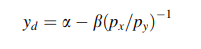 Turning to individual A endowed with good x, his demand for good y, yd is given by: