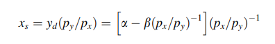 Clearly, students of economics are accustomed to solutions of such equations as the above for the determination of equilibrium pairs of prices and quantities, which may not be unique but multiple. In fact, in our simple model of linear demand equations, we may have three possible solutions from which only one is economically meaningful. From the above discussion two corollaries follow: 1. A change in the stock of good x held by person A, sx, other things held constant, would have no effect on the equilibrium price. While this is mathematically true it is certain though that a change in sx will imply a change in all the parameters of the model. 2. Equilibrium in the market for good x implies equilibrium in the market for good y.