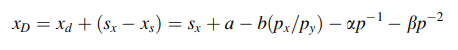 Let sx be the endowment of good x held by A. Then it follows that the demand for x by A is given by sx xs. The total demand curve is given by