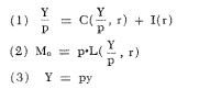 where Y is money income, p is the general price level. r is the rate of interest, M. is the nominal exogenouslyset money stock,y is real income or output, and C, I, and L stand for the consumption, investment, and demand-for~moneyfunctions, respecively.