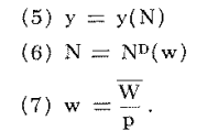 On the other baud, let us consider the Keynesian case, which we flow define as one in which money wages are sticky (i.e., there exists money illusion in the supply of labor), but in which the price level is an endogunous variable. To analyze this ease, we must add three equations to the basic model: an aggregate production function (equation (5) below); a labor market summary equation which states that the supply of ‘abor services per unit time (N) is infinitely elastic over a wide range of employment at whatever money wage rate prevails, and that the demand for labor (ND) is determined by the real wage (w) (equation (6)); and a definition which states that the real wage is the ratio of the money wage rate (W) and the price level (equation (7)) The bar over the money wage rate indicates that it is being held constand here.