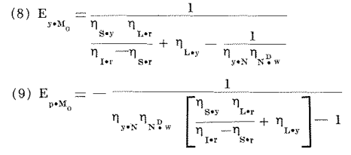 By differentiating the system defined by equations (1) - (3) and (5) - (7) totally with respect to M0 , expressions for the systemic elasticities E~.)l and ~ can be found. They are as follows (see the appendix for their derivation):