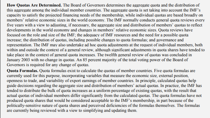 Quota and voice reform is central to the legitimacy and effectiveness of the IMF. During the 2006 Singapore Annual Meetings, a two-year package was initiated with, as a first step, an ad-hoc increase in quotas for four countries. The MTS calls for efforts to address other aspects of governance, including transparent selection of management and better definition of the role of the Board.