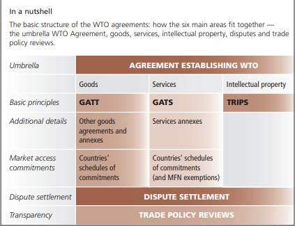 The WTO replaced GATT as an international organization, but the General Agreement still exists as the WTO’s umbrella treaty for trade in goods, updated as a result of the Uruguay Round negotiations. Trade lawyers distinguish between GATT 1994, the updated parts of GATT, and GATT 1947, the original agreement which is still the heart of GATT 1994. Confusing? For most of us, it’s enough to refer simply to “GATT”.