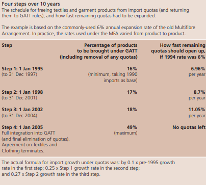•Effective” use of the agreement’s provisions on early integration of products into normal GATT rules, and elimination of quotas.