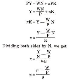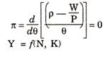 The above equation indicates that the profit rate is a function of labour productivity (p) and real wage rate (W/P) and capital labour ratio (8). In other words, the profit rate is shown as capable of varying directly with the rate of net return to capital and inversely with the coefficient of capital intensity. The necessary condition for maximization is that the first derivative must be zero.