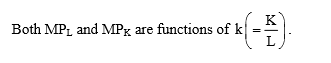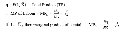Total output when there is a variation in labour utlilisation, keeping the other factor K, fixed. Thus, the marginal physical product, which shows the change in output quantity for a unit change in the quantity of an input, (L), when all other inputs (K) are held constant. Mathematically, it is given by the first partial derivative of a production function with respect to labour. Thus,