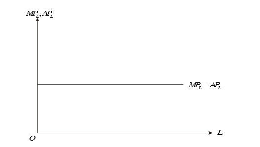 Constant Returns : Here, APL is constant and tanθ = tan , therefore, MPL = APL as is shown by a horizontal straight line in the Figure