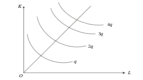 Increasing Returns to Scale As there is IRS, along a ray through the origin, the distance between the consecutive iso-quants is less