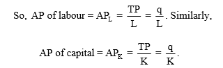 Short period in production refers to a time when some inputs remain fixed. A fixed input is one, whose quantity cannot be changed readily, whereas, a variable input varies with production. Inputs like land, building and major pieces of machinery cannot be varied easily and, therefore, can be called fixed inputs. On the other hand, inputs like labour (labour hours), raw materials, and processed materials can be easily increased or decreased. Therefore, these are categorised as variable inputs. Depending on whether inputs can be kept fixed or not, we have a short period or a long period. To put this more precisely, if inputs being used in the production process have just enough time such that they cannot be varied, then the analysis pertains to the short-run. On the other hand, if the inputs employed have enough time such that they are amenable to variation, then the analysis is based on the frame work of long-run. Generally, the firms do not readily change their capital, which could be land, machinery, managerial and technical personnel. Therefore, these are fixed input in the short-run. When we treat these under Κ, the production function can be written as q = F(L, K) where L = Labour, a variable factor K= Capital, a fixed factor