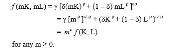 Further, it explains the use of the term distribution parameter for the parameter δ, since the exponents of the Cobb-Douglas function with constant returns to scale equal competitively determined factor income shares. It can be shown that CES function exhibits increasing, constant or decreasing returns to scale depending on the parameter ε > 1, ε = 1, or ε < 1: