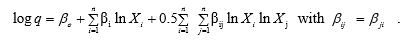 We need to impose the symmetry condition of βij = βji to ensure the fulfillment of second-order partial derivatives. The function exhibits constant returns to scale and increasing returns to scale can be incorporated into the function by using the transformation q' = qε, ε > 1.