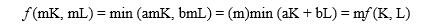 With the form reflected by Equation 1, the fixed proportion production function exhibits constant returns to scale since