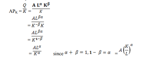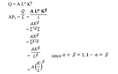 2) Average products of capital and labour can be expressed in terms of ratios of inputs. Average product of labour can be obtained by dividing the production by the amount of labour