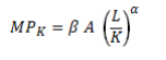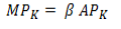 Thus the marginal product of capital (MPK) can be expressed in terms of ratios of inputs L and K. It is also equal to β times APK. That is,