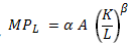 Similarly the marginal product of capital (MPL) can be expressed in terms of ratios of inputs L and K. Symbolically
