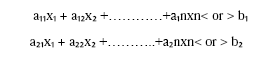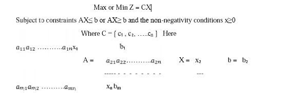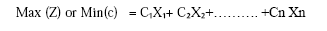 (1) An objective function to be maximized or minimized. It will have n decision variables x1,x2 ….xn and is written in the form.