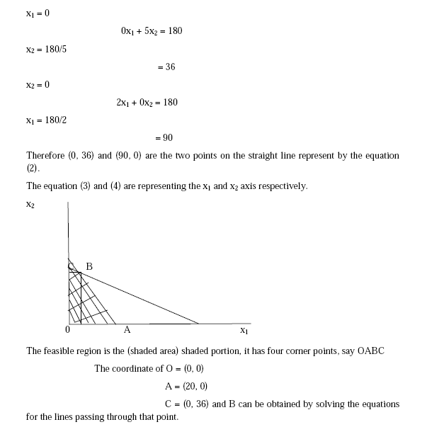 5. The feasible .egion is a many sided fig. The corner point ot the fig. are to be located and their co -ordinates are to be measured.