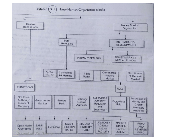The focus is on its organisation/structure and not on quantitative growth. The focus is also on describing the current scenario in contrast to th historical evolution/past history. The RBI is the most important constituent of the money market organisation.