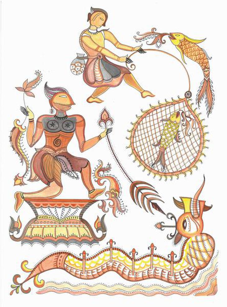 The illustrations of Subika Laishaba have visual language from the elements such as lines, shapes, forms, colours, and patterns.