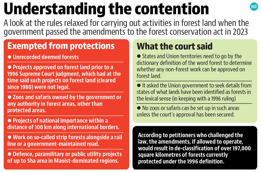 The Supreme Court issued an interim order on February 19, 2024, emphasizing that states and Union territories (UTs) must adhere to the Definition of ‘Forest’ as established in the TN Godavarman Thirumalpad v. Union of India judgement of 1996.
