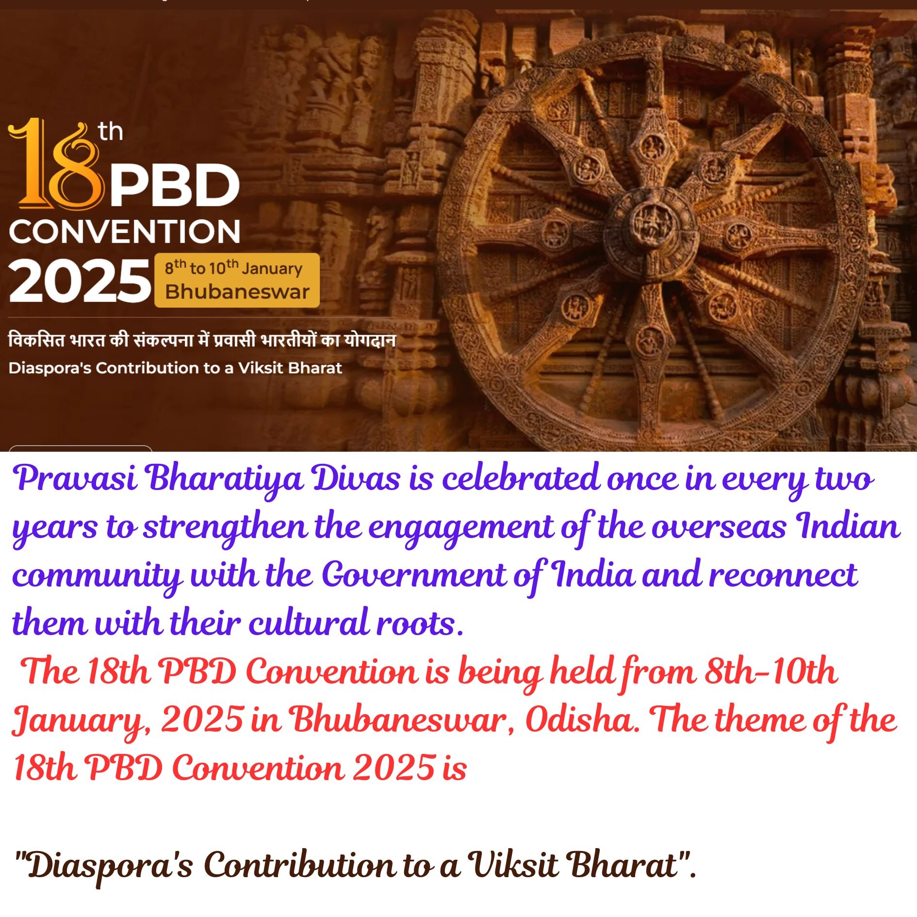 Theme: "The Diaspora's Contribution to a Viksit Bharat" (A Developed India). The theme emphasizes the critical role of the Indian diaspora in shaping a prosperous and developed India, highlighting their contributions in various domains like technology, economy, and culture.