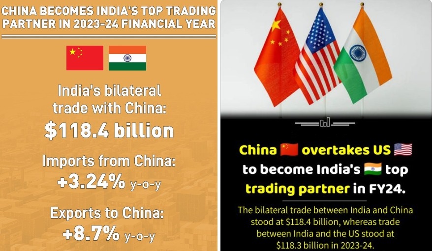 In the fiscal year 2024, India’s bilateral trade with China totalled $118.4 billion, with imports rising by 3.24% to $101.7 billion and exports increasing by 8.7% to $16.67 billion.