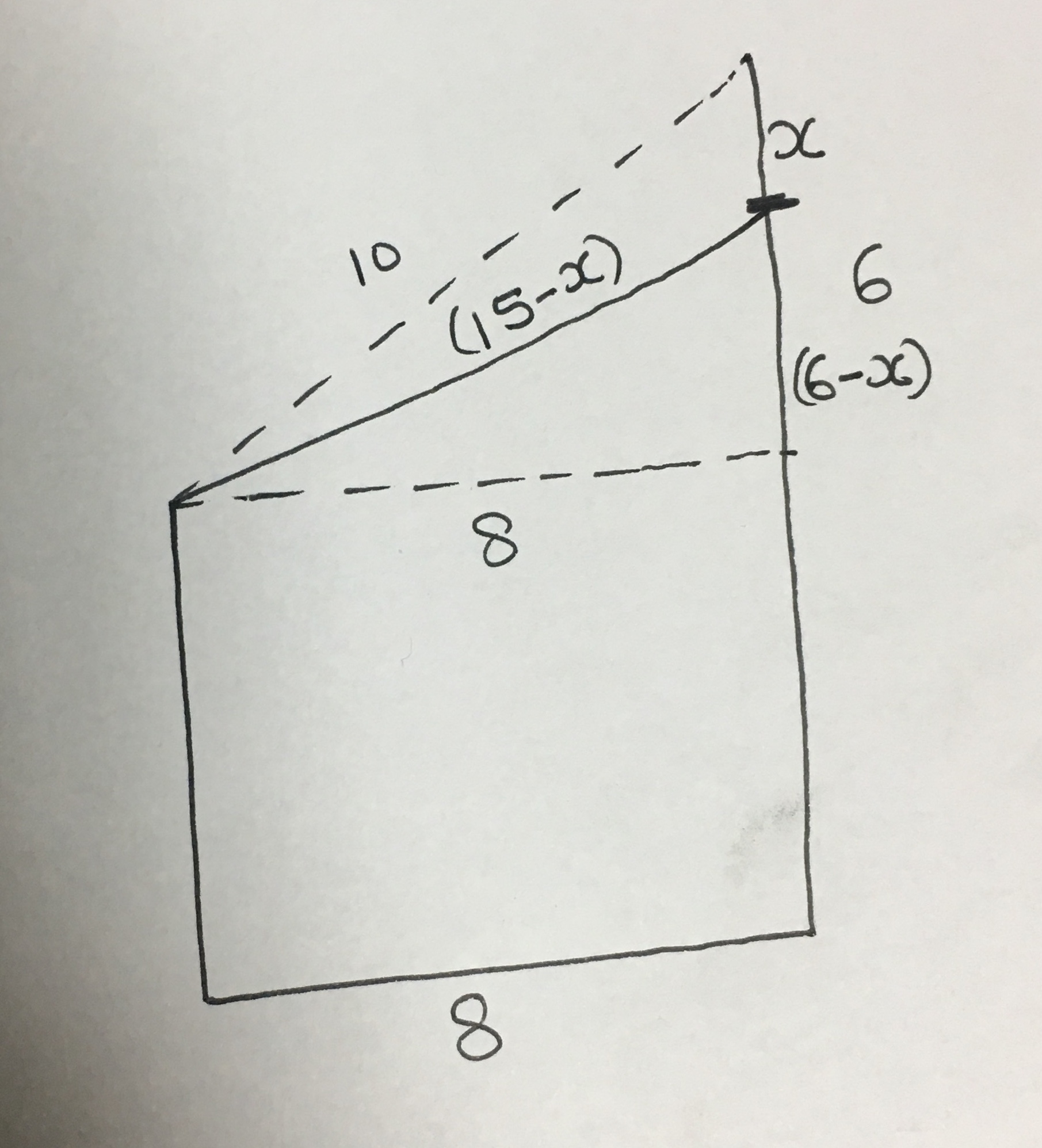 Two pillars are placed vertically 8 feet apart. The height difference of the two pillars is 6 feet. The two ends of a rope of length 15 feet are tied to the tips of the two pillars. The portion of the length of the taller pillar that can be brought in contact with the rope without detaching the rope from the pillars is?