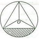 An equilateral triangle is inscribed in a circle of radius 1 unit. The area of the shaded region, in square unit, is?