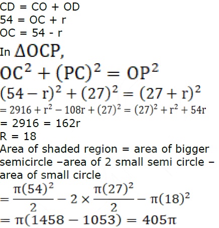 In the figure given below, the diameter of bigger semicircle is 108 cm. What is the area of the shaded region?