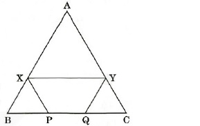 In the figure given below, ABC is an equilateral triangle with each side of length 30 cm. XY is parallel to BC, XP is parallel to AC and YQ is parallel to AB. If XY + XP + YQ is 40 cm, then the value of PQ is