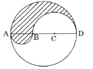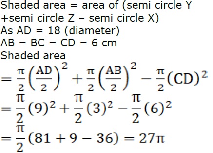 In the figure given below, ABCD is the diameter of a circle of radius 9 cm. The lengths AB, BC and CD are equal. Semicircles are drawn on AB and BD as diameters as shown in the figure. What is the area of the shaded region?