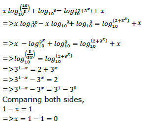 What is the solution of the equation x log10 10 3 log103 log10 2 3x ........