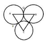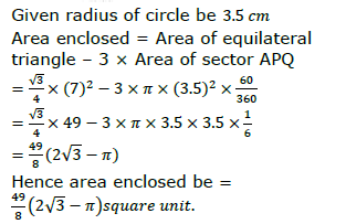 Three circles each of radius 3.5 cm touch one another. The area subtended between them is
