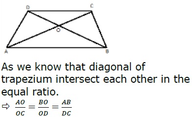 In a trapezium ABCD, AB is parallel to CD and the diagonals intersect each other at O. What is the ratio of OA to OC equal to?