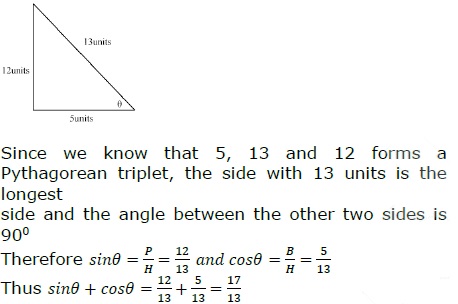 If a triangle has sides 5, 13 and 12 units and ?? is the acute angle of the triangle, then what is value of (sin??+cos??)?